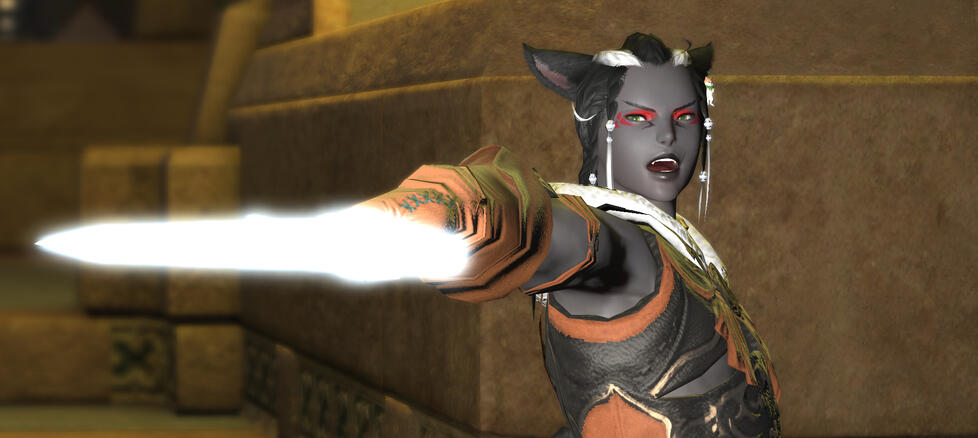 BIOGRAPHY: Ikah'ra was born in the year 1557 of the Sixth Astral Era, fifth son of an especially large family in a quiet little village - few households all working to promote life under the eyes of the elementals. He didn't get to know them for long, by the standards of most. He could be considered lucky that he was away training conjury when the Calamity struck the continent, chaperoned by his older brother Ohko'a. With nothing much to their names, they did all that they could and came to Ul'dah as refugees. As many found out... not all it's cracked up to be.With years of experience under his belt scrapping, hauling, and stealing to help keep the brothers afloat, he stumbled across the right mark. a hot manComing off the streets, Akira felt like he could finally live instead of survive. His new friend X'Thala's connections helped his brother into housing, but Akira needed to see the world... and through X'thala this was dangerously feasible. More so once he met Aloisia, the adoptive mother and Maelstrom Captain.Eventually Akira's wanderlust was sated, apart from little bouts of needing to get away. He settled into guarding Thala's performing troupe, their will-they-won't-they dynamic coming to a boiling point. Before they knew it, they had a host of dogs, chocobo, vows, and even a weasel.Life picked up again during the Werlyt Rebellion, doing what he could alongside his husband and O'Zvi (their gardener/stablehand turned situationship). Terncliffe was liberated, but not before the reappearance of Sophia nan Frejur - a researcher specialising on the Echo and indoctrination. Sophia withdrew with Zvi in tow, and Akira earned a heavy gunblade wound to the chest for trying to stop them.Months passed and Zvi returned with Kristjan, also taken by Sophia. Time heals all wounds, and distance makes the heart grow fonder. O'zvi proposed to Akira, something he'd been planning since before the abduction, and long overdue.Before they knew it, they'd half adopted Kris. It wasn't exactly on purpose, but neither was it a disappointment. They were left with an especially large family in a not so quiet neighbourhood, no thanks to their household.CHARACTER NOTES: If you see him carrying any weapon other than a lightweight blade, that's not your man: call an exorcist immediately. Shields are... acceptable.TROPES AND THEMES: Alley-cat, Not just a pretty face, Tearful killer, Is he... you know... 🫳, Responsible by comparison,