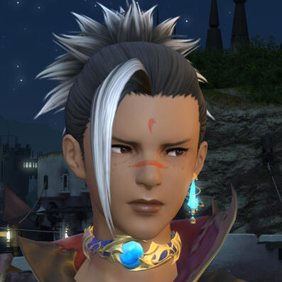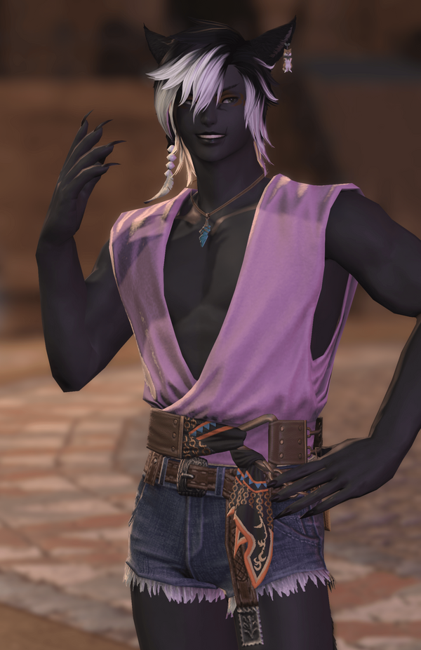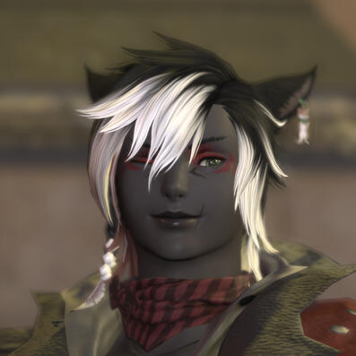 BIOGRAPHY: Ikah'ra was born in the year 1557 of the Sixth Astral Era, fifth son of an especially large family in a quiet little village - few households all working to promote life under the eyes of the elementals. He didn't get to know them for long, by the standards of most. He could be considered lucky that he was away training conjury when the Calamity struck the continent, chaperoned by his older brother Ohko'a. With nothing much to their names, they did all that they could and came to Ul'dah as refugees. As many found out... not all it's cracked up to be.With years of experience under his belt scrapping, hauling, and stealing to help keep the brothers afloat, he stumbled across the right mark. a hot manComing off the streets, Akira felt like he could finally live instead of survive. His new friend X'Thala's connections helped his brother into housing, but Akira needed to see the world... and through X'thala this was dangerously feasible. More so once he met Aloisia, the adoptive mother and Maelstrom Captain.Eventually Akira's wanderlust was sated, apart from little bouts of needing to get away. He settled into guarding Thala's performing troupe, their will-they-won't-they dynamic coming to a boiling point. Before they knew it, they had a host of dogs, chocobo, vows, and even a weasel.Life picked up again during the Werlyt Rebellion, doing what he could alongside his husband and O'Zvi (their gardener/stablehand turned situationship). Terncliffe was liberated, but not before the reappearance of Sophia nan Frejur - a researcher specialising on the Echo and indoctrination. Sophia withdrew with Zvi in tow, and Akira earned a heavy gunblade wound to the chest for trying to stop them.Months passed and Zvi returned with Kristjan, also taken by Sophia. Time heals all wounds, and distance makes the heart grow fonder. O'zvi proposed to Akira, something he'd been planning since before the abduction, and long overdue.Before they knew it, they'd half adopted Kris. It wasn't exactly on purpose, but neither was it a disappointment. They were left with an especially large family in a not so quiet neighbourhood, no thanks to their household.CHARACTER NOTES: If you see him carrying any weapon other than a lightweight blade, that's not your man: call an exorcist immediately. Shields are... acceptable.TROPES AND THEMES: Alley-cat, Not just a pretty face, Tearful killer, Is he... you know... 🫳, Responsible by comparison,